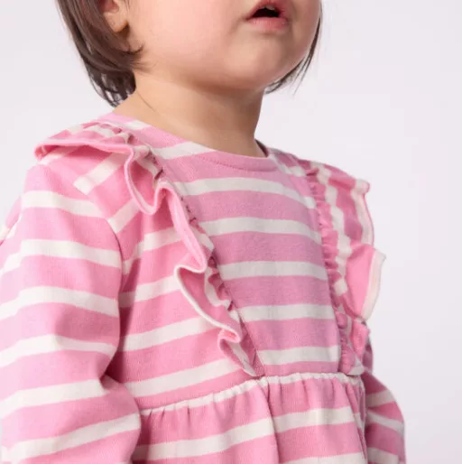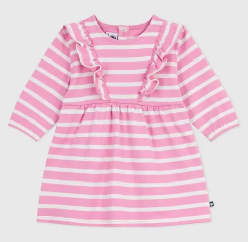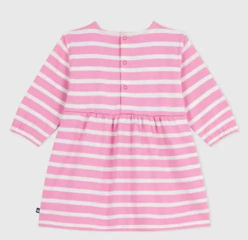 Robe bébé en coton manches longues rayée – Boudoir/Milk de la marque Petit Bateau