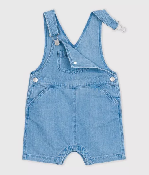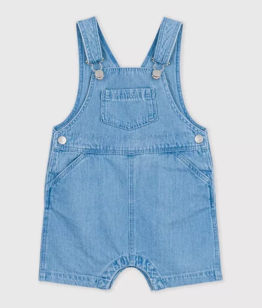 Salopette courte en denim de la marque Petit Bateau
