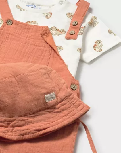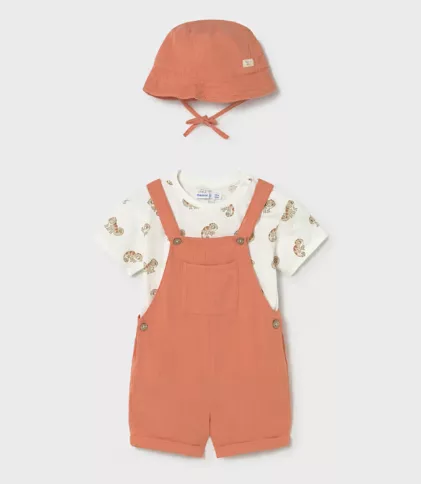Ensemble bébé 3 pièces avec salopette courte Mayoral | 6 mois à 3 ans