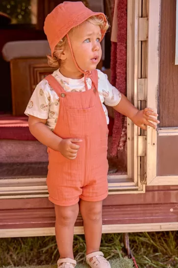 Chez Little Bambins, nous sélectionnons des vêtements bébé qui allient qualité, confort et praticité. La salopette courte bébé est confectionnée en 100 % coton, avec une doublure également en coton, pour une douceur optimale et un confort parfait sur la peau sensible de bébé. Le t-shirt manches courtes, en coton majoritaire, est léger et agréable à porter, idéal pour les journées chaudes. Le bonnet assorti, doublé en coton, complète l’ensemble avec une touche de douceur et de protection.