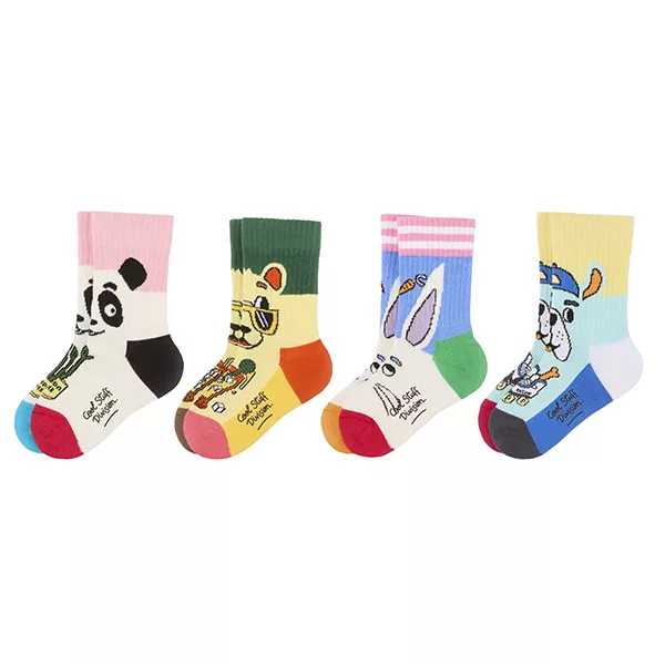 Avec le pack de chaussettes Mascots, Hello Hossy et Little Bambins signent une création colorée, responsable et ultra-tendance. Un coffret plein de bonne humeur pour les petits aventuriers stylés qui aiment faire la différence dès leurs premiers pas.