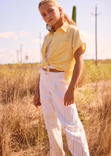 Le design flare apporte une touche moderne et tendance à ce pantalon pour fille. Sa coupe évasée à partir du genou crée un look élégant et actuel, tout en restant facile à porter au quotidien. La couleur blanche lumineuse ajoute de la fraîcheur et s’associe facilement avec une large gamme de hauts : t-shirts colorés, chemises légères, sweatshirts ou pulls. Ce jean flare blanc devient ainsi un incontournable du dressing estival ou de la garde-robe casual chic de votre enfant.