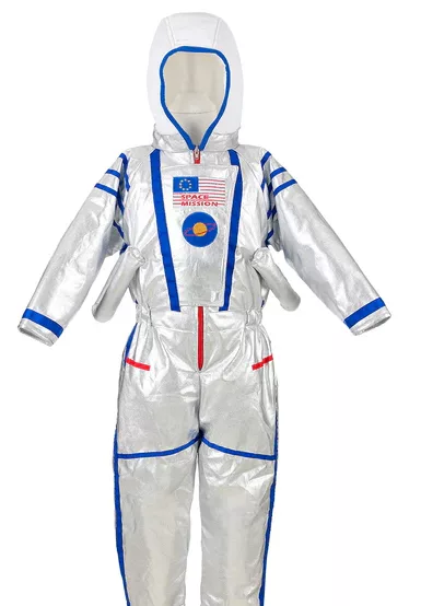 Conçue dans un tissu métallique argenté, la combinaison est à la fois légère, confortable et résistante, idéale pour courir, jouer et partir en mission spatiale en toute liberté.
