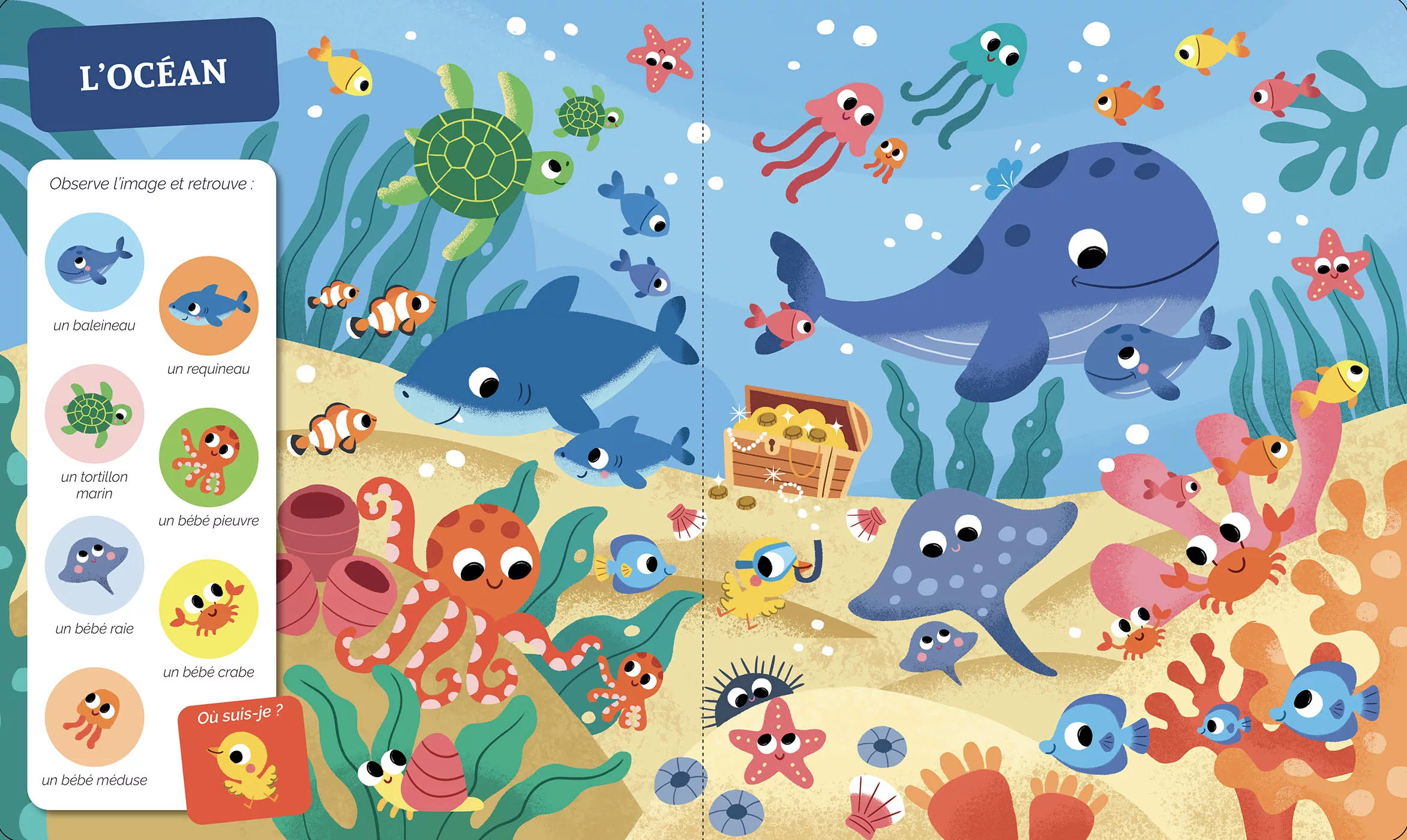 Sur chaque planche, les tout-petits doivent retrouver 7 éléments cachés ainsi qu’une mascotte malicieuse, développant ainsi leur observation, leur concentration et leur sens de l’éveil.