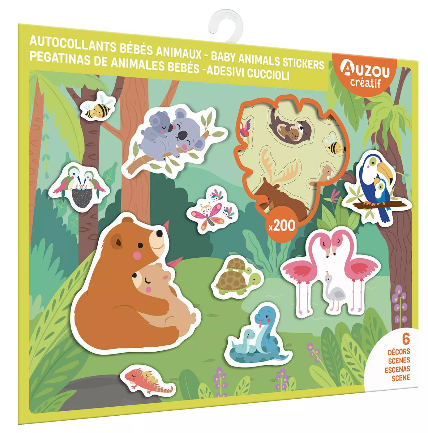 Cette pochette contient 200 autocollants adorables à positionner et repositionner sur 4 magnifiques décors illustrés. L’enfant peut créer ses propres scènes, inventer des histoires, déplacer les personnages et recommencer autant de fois qu’il le souhaite. Cette liberté de manipulation favorise l’expression créative et la construction de l’imaginaire tout en renforçant la confiance en soi.