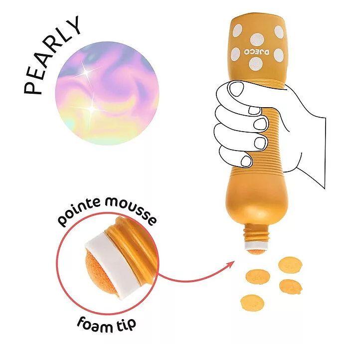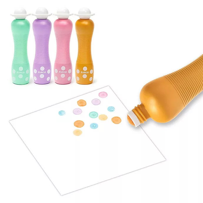Le Lot de 4 Marqueurs Gros Poids de Djeco se compose de quatre feutres mousses effet nacré de couleurs différentes : vert, mauve, rose et orange. Avec ces marqueurs, votre bout de chou pourra réaliser ses premières ◊uvres d’art en réalisant plein de points colorés !