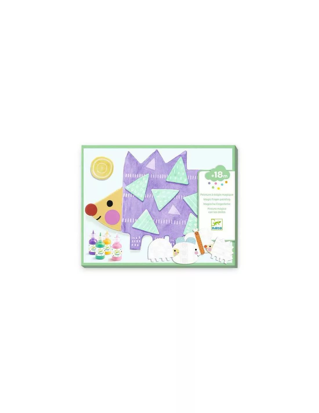 Découvrez le coffret Peinture à doigts magique Petites formes de Djeco, une activité créative adaptée aux enfants dès 18 mois. Une pochette créative avec des autocollants à coller.