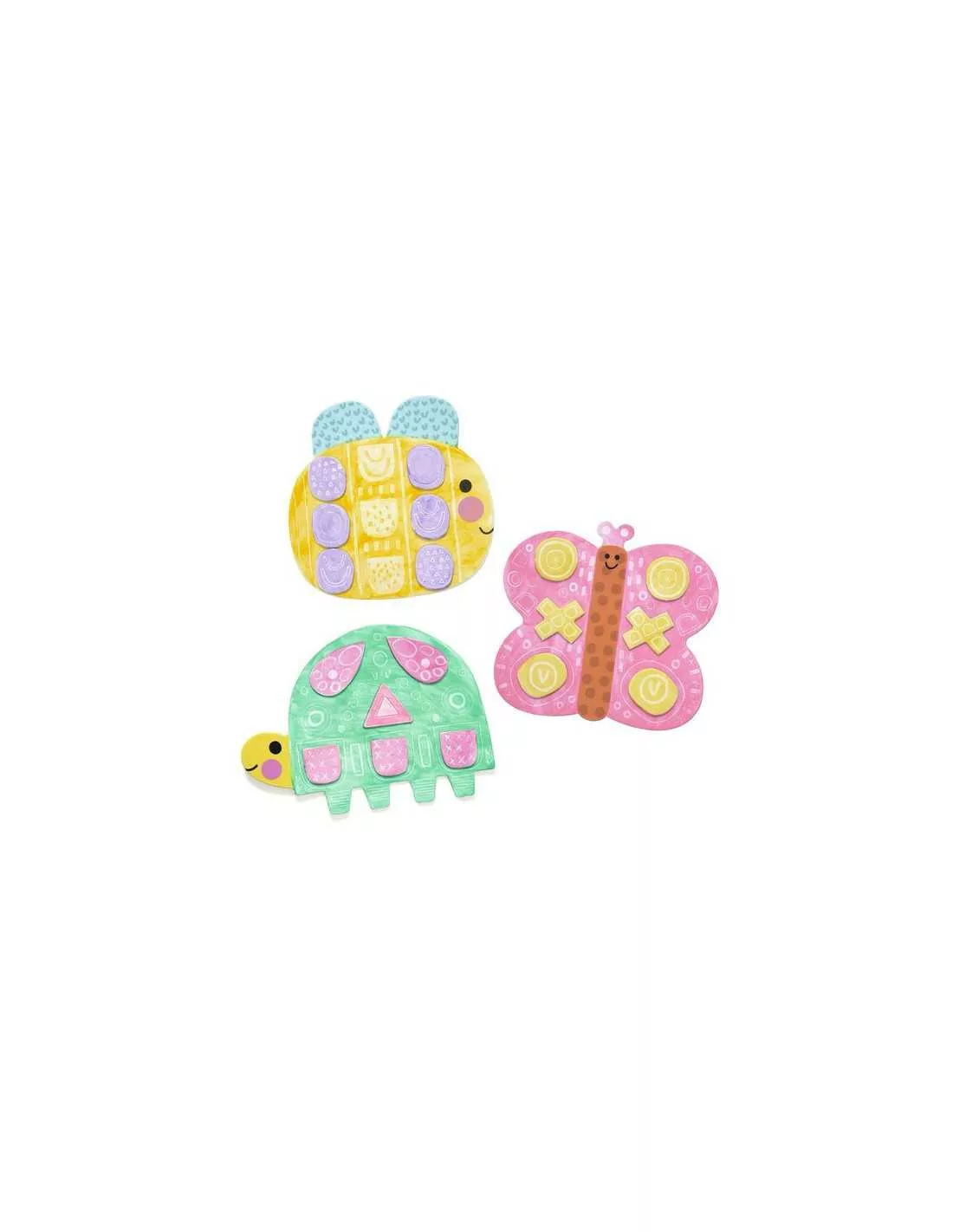 Le coffret comprend une protection de table, une activité non salissante qui amusera beaucoup les filles et les garçons dès 18 mois. Une activité ludique qui offre une première approche des formes et des couleurs.