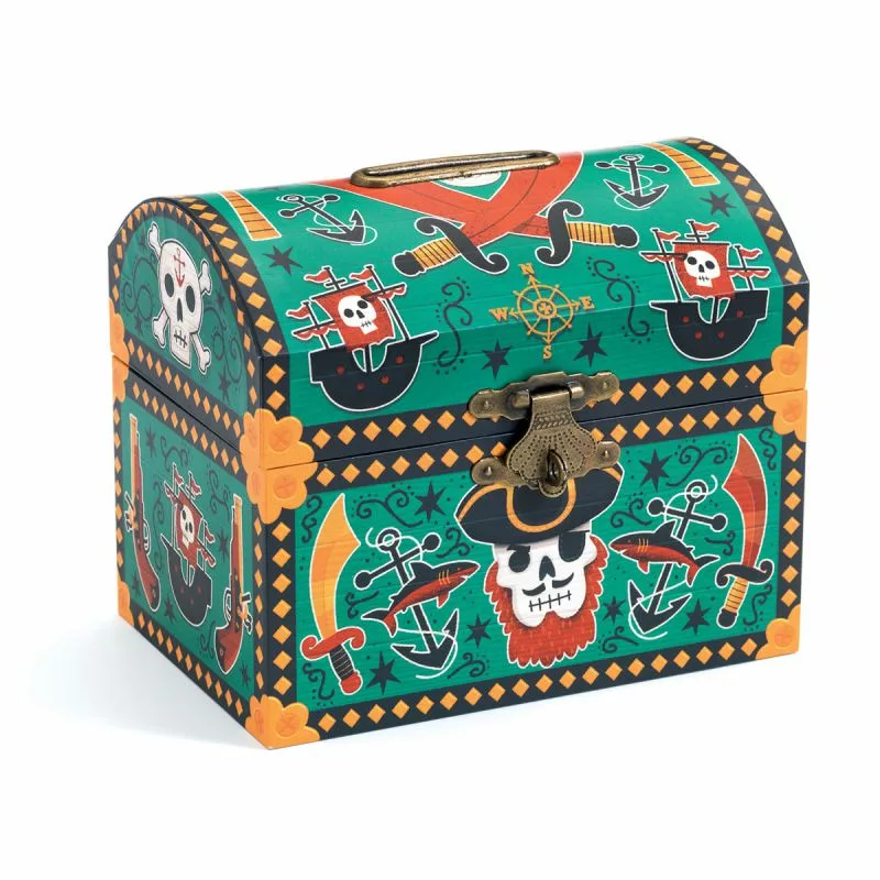 Découvrez la tirelire pirate de Djeco, une tirelire en forme de coffre au trésor de la collection Little Big Room de Djeco qui servira de décoration et conservera les économies des enfants qui aiment le thème des pirates.