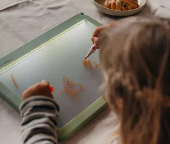 Kit de marqueurs effaçables aux couleurs fluorescentes pour dessiner sur le tableau noir de la KIDYDRAW-PRO. Ils mettant en avant un effet néon qui sublimeront les couleurs des dessins de vos enfants dans l’obscurité.