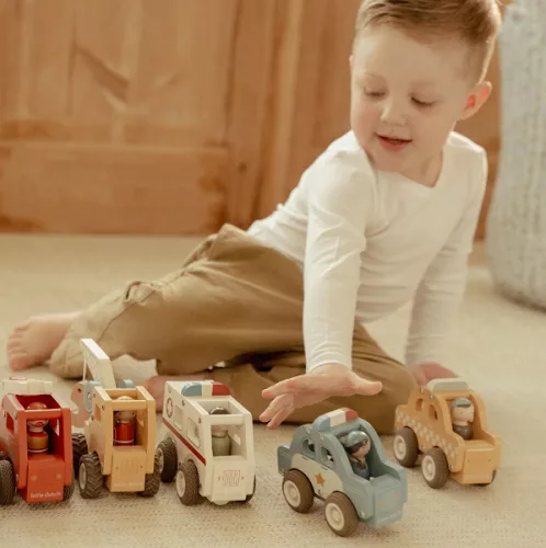 Les enfants peuvent inventer leurs propres histoires : traverser la ville animée, s’arrêter à la gare ou ramener les passagers à la maison. Un jouet intemporel qui stimule la motricité, la créativité et le jeu symbolique.
