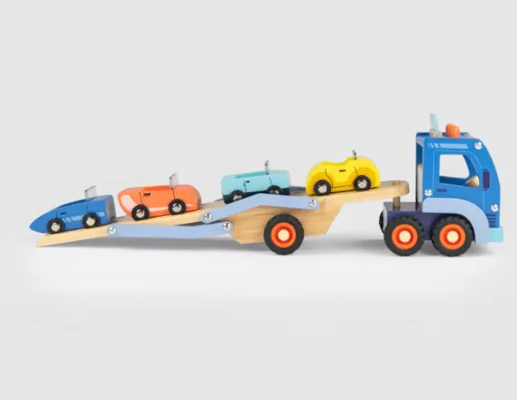 Camion transporteur en bois avec voitures – Avenue du Moulin | Little Bambins